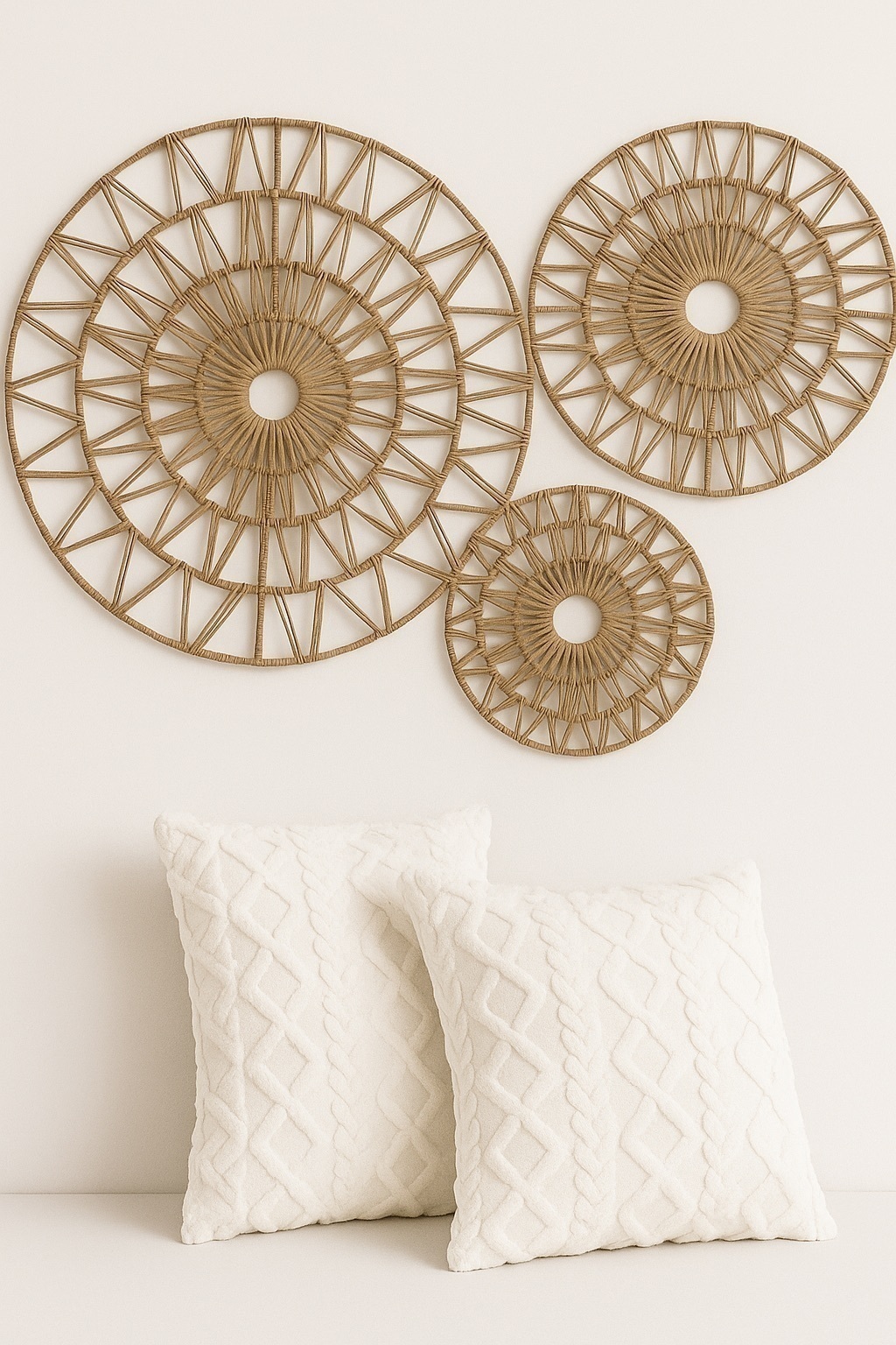 Transforma tus paredes con nuestro set de 3 tapices circulares. Este conjunto incluye tres tamaños: uno de 40 cm, otro de 60 cm y el más grande de 80 cm.